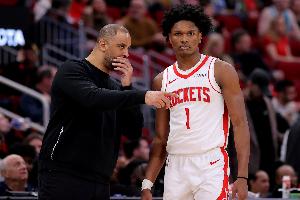 体育资讯3月14日讯 NBA常规赛,火箭107-105击败鹈鹕。赛后火箭主教练乌度卡接受采访。