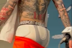 赛后采访,遭遇车祸的拉梅洛·鲍尔明显情绪不高,他不仅光个膀子,而且球裤只穿了一半,露出了里面的打底裤,在采访中途,他起身离开。