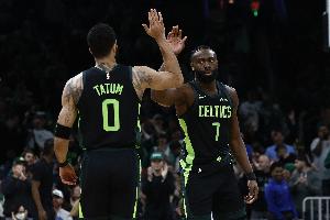此役,塔图姆出战35分钟12投5中,三分6中3、罚球6中6砍下19分12篮板7助攻3抢断1盖帽;杰伦·布朗出战39分钟17投9中,三分3中1,罚球14中12砍下31分8篮板8助攻2抢断。