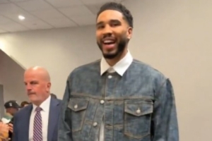 赛前塔图姆笑容满面到场,对着摄像机表示:“我们强势回归(We are so back)!我们回来啦!”
